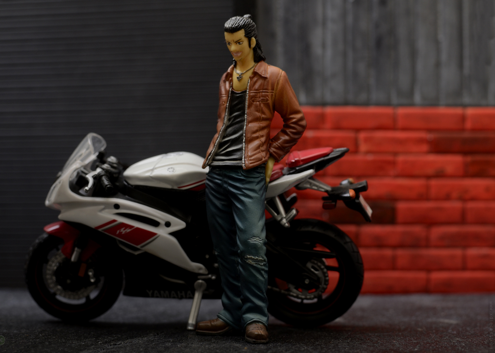 The bike guy here is “Taka” (click here for full review) and I took him because he is wearing a cool brown leather jacket, blue jean and brown leather shoes, which all gives him a rider kind vibe! His hairstyle also gives him that biker blood into him.